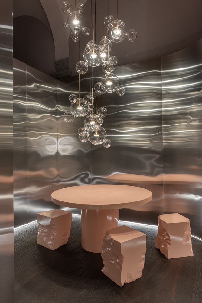 Inspired by a walk surrounded by a thousand soap bubbles floating in the air. Their lightness has become a metaphor for the immateriality of light, crystallized into the Bolle collection.