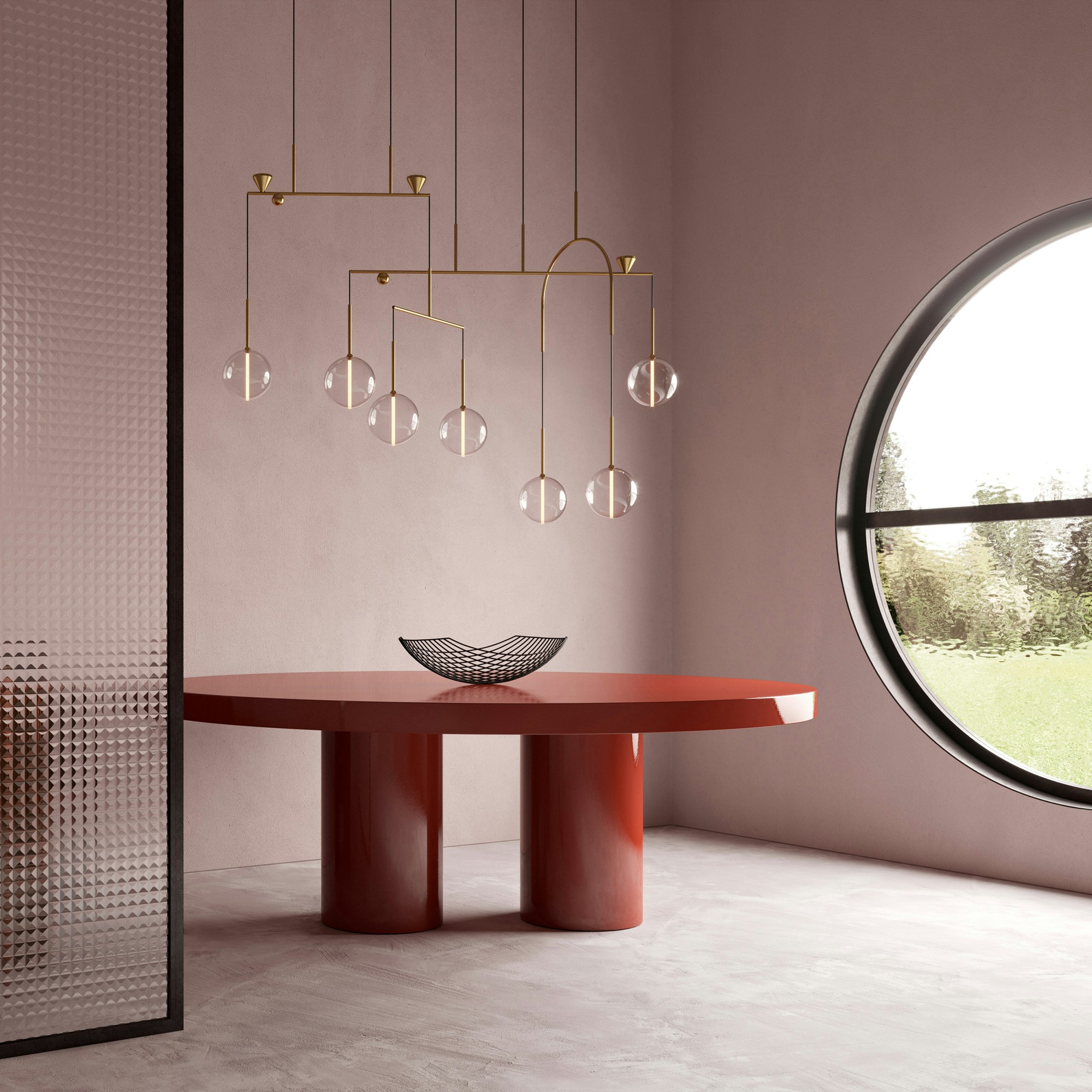 When we look at each creation we can perceive the dialogue between glass transparency and brass compositional lines.