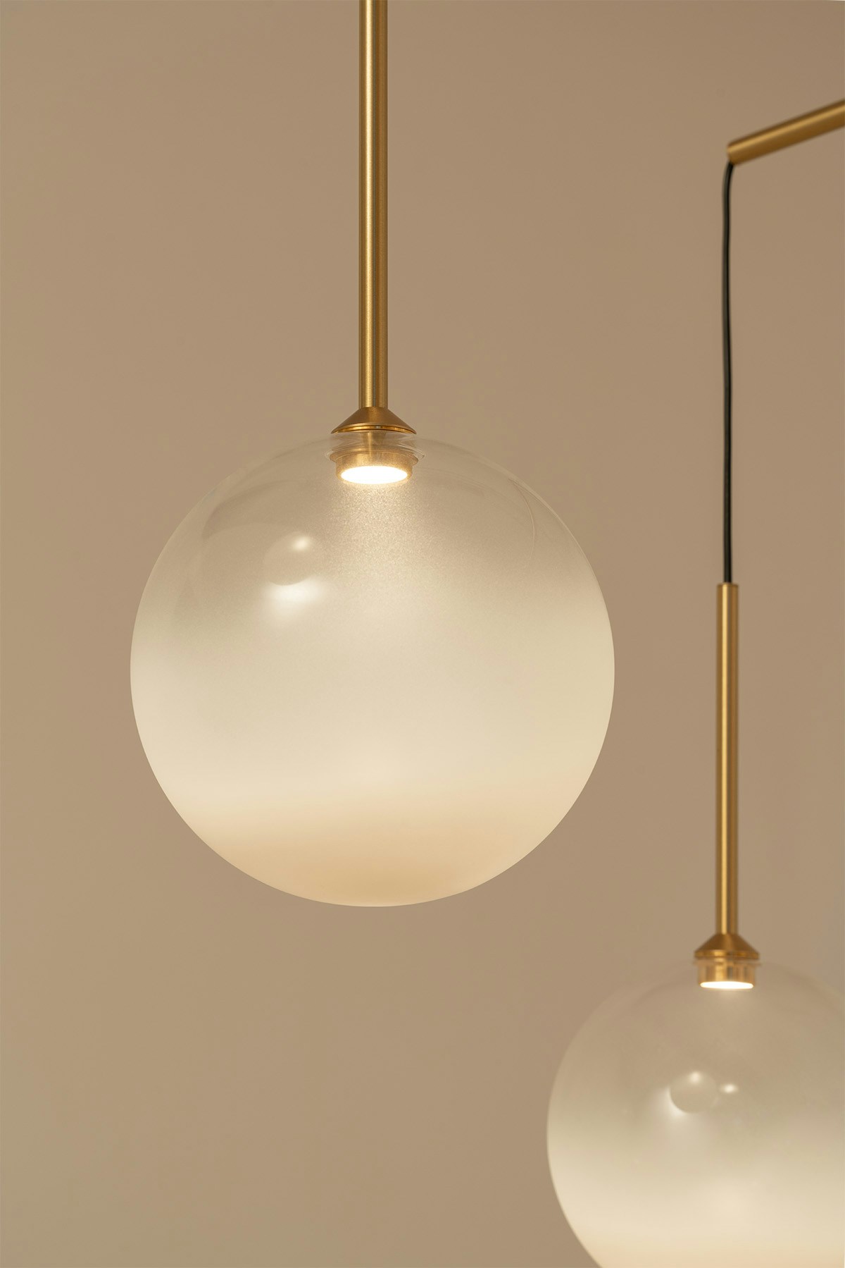 We were hit by the magic and simple beauty of nature, and our curiosity led us to create an abstract interpretation. This moment inspired us to develop a balancing mobile lighting structure that suspends dewdrops at night.