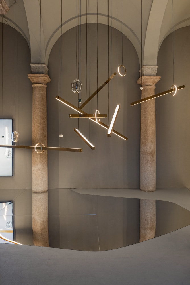 Con occhio attento ai dettagli, scegliamo i materiali più raffinati. La barra in ottone o alluminio è una costante all'interno di una serie fluttuante di materiali della tradizione, prodotti dai migliori artigiani italiani. I pezzi in vetro di Murano soffiato a mano, i colori del marmo e le finiture in metallo possono essere personalizzati per adattarsi allo spazio abitativo.
