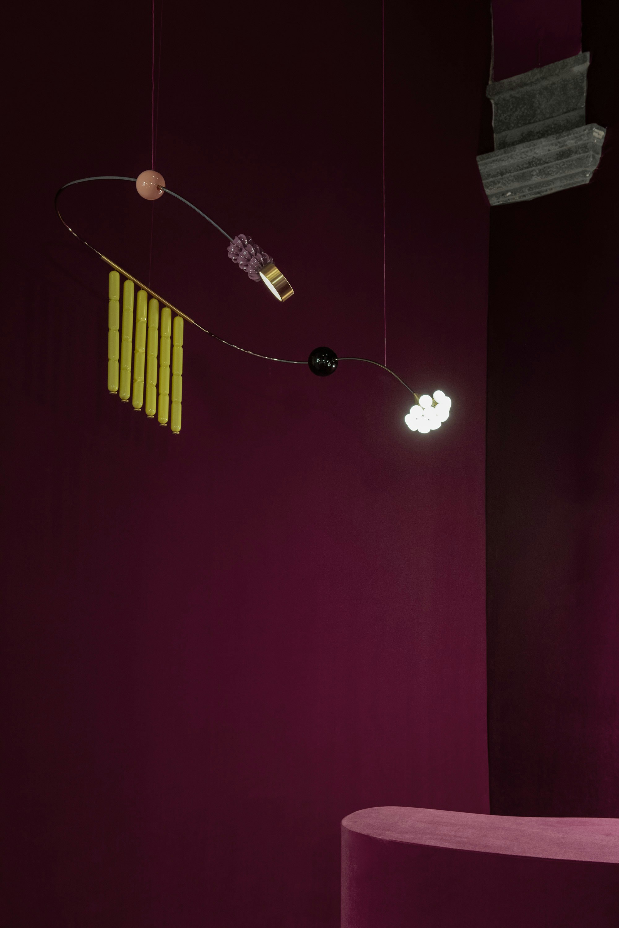 Una wunderkammer che propone un viaggio in 6 anni di ricerca, ispirata alla poesia Il Cosario, che racconta come gli oggetti raccolti negli anni siano attivatori emotivi senza tempo. Componenti vitrei, inserti metallici, ciuffi di cavi e bottoni in ottone creano composizioni che si trasformano in forme nuove e uniche attraverso un sistema di pesi ed equilibri, dove i nostri elementi iconici scorrono come leggeri scarabocchi in un paesaggio di ricordi.