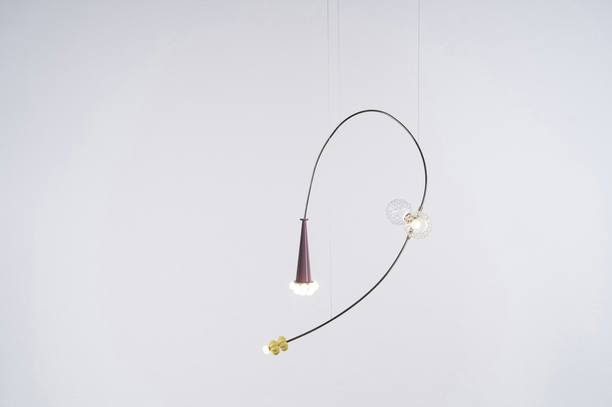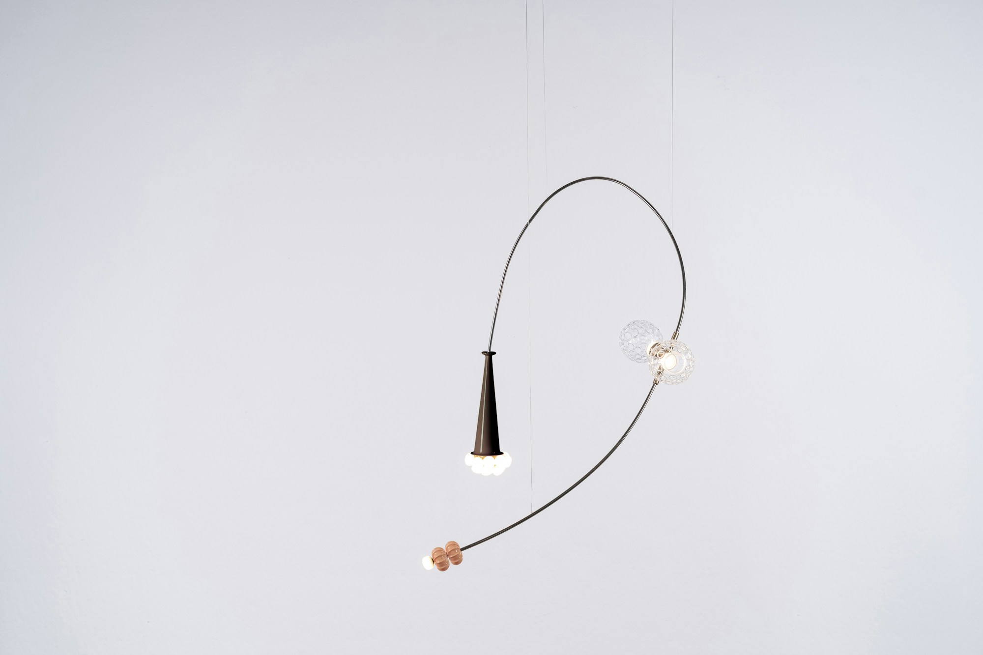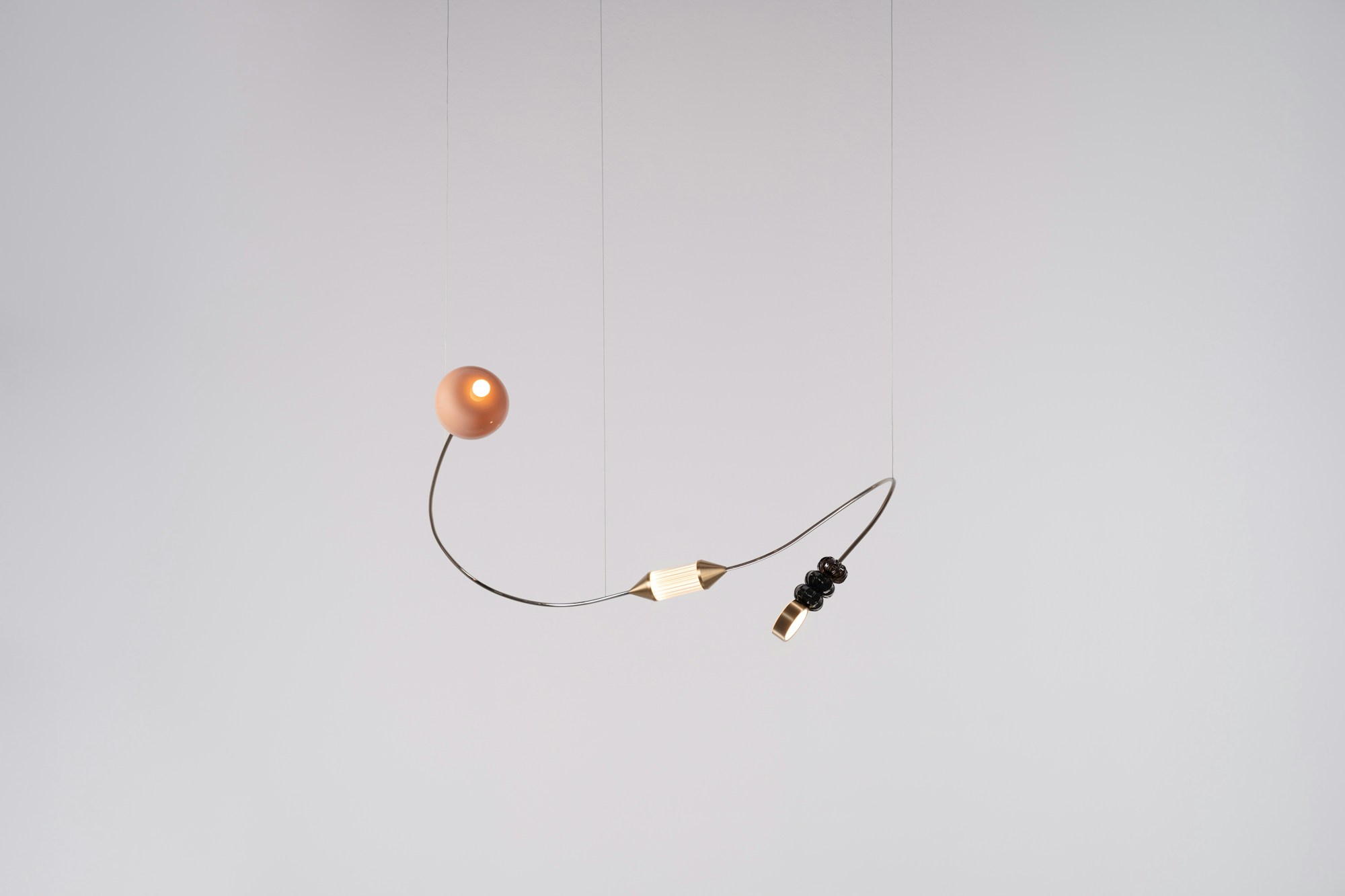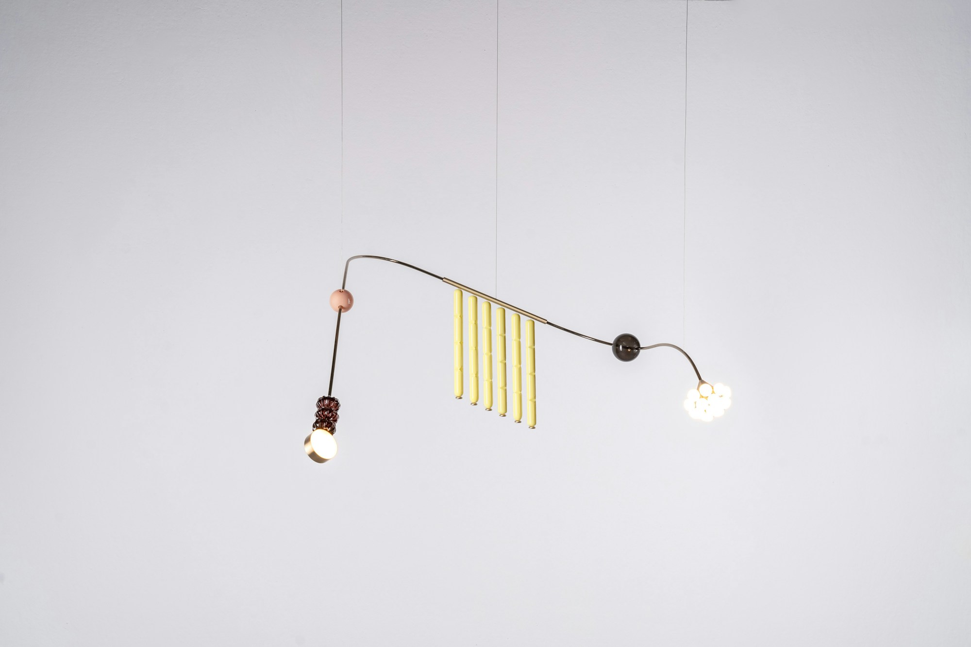 Una wunderkammer che propone un viaggio in 6 anni di ricerca, ispirata alla poesia Il Cosario, che racconta come gli oggetti raccolti negli anni siano attivatori emotivi senza tempo. Componenti vitrei, inserti metallici, ciuffi di cavi e bottoni in ottone creano composizioni che si trasformano in forme nuove e uniche attraverso un sistema di pesi ed equilibri, dove i nostri elementi iconici scorrono come leggeri scarabocchi in un paesaggio di ricordi.