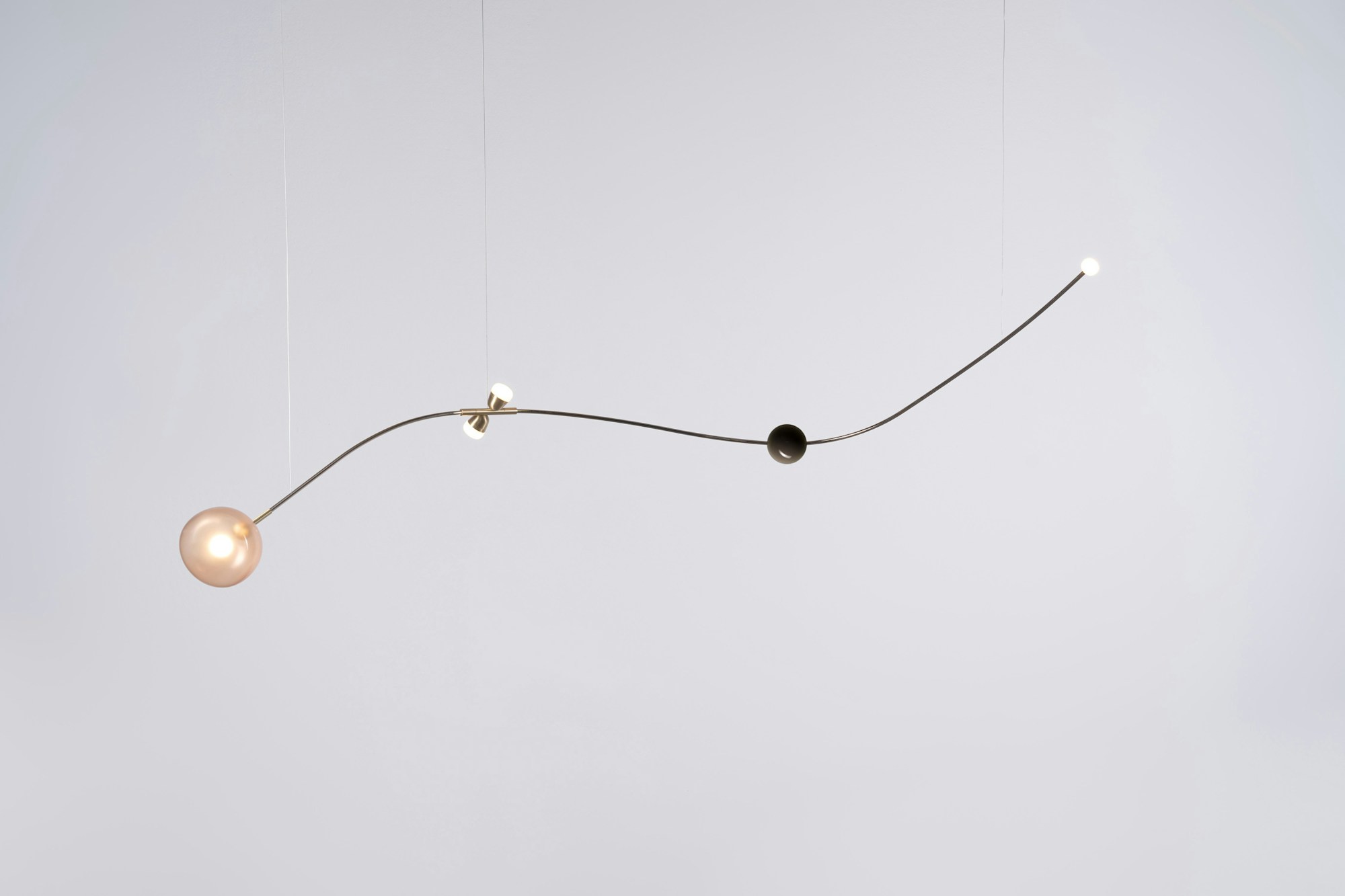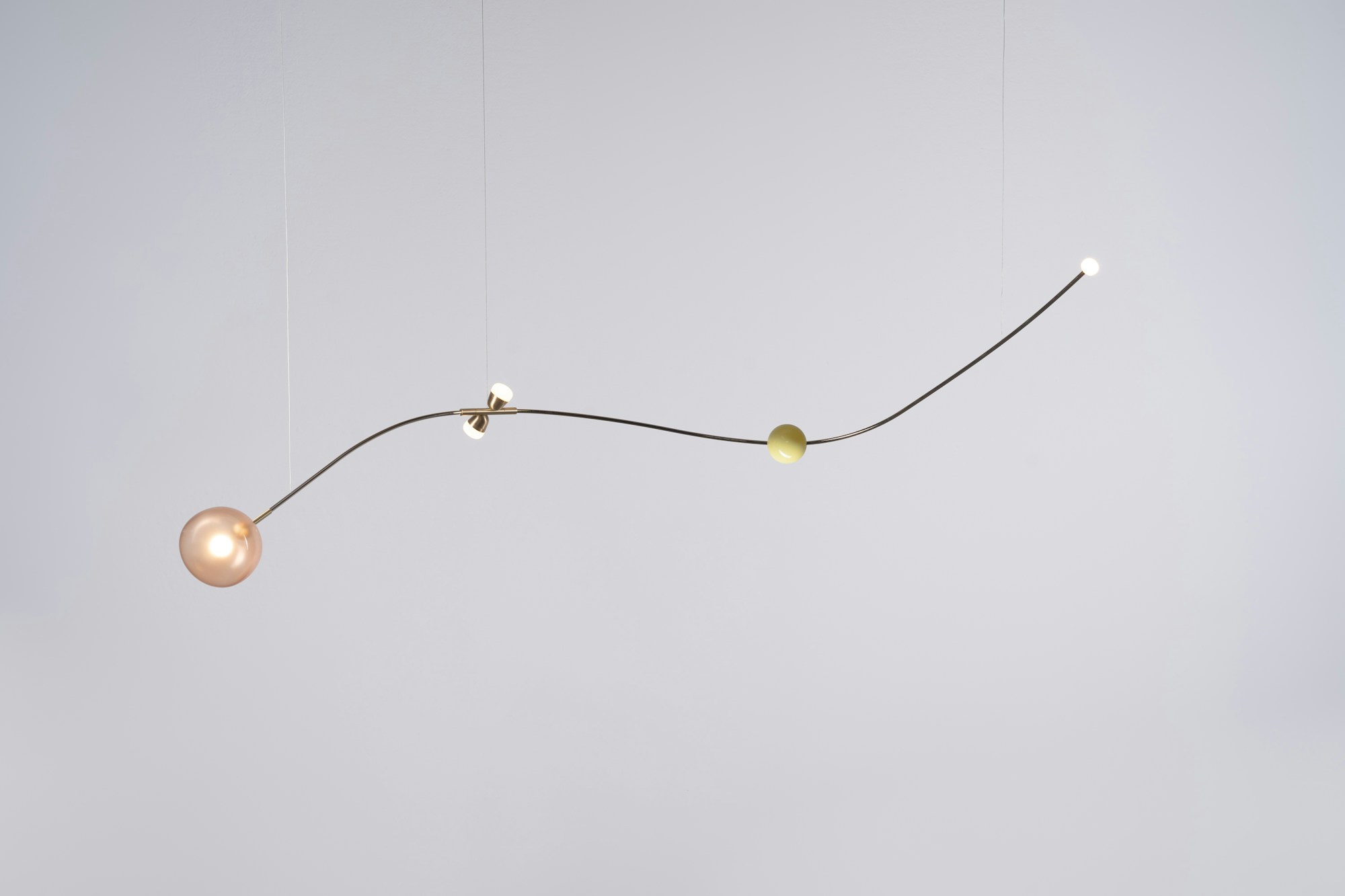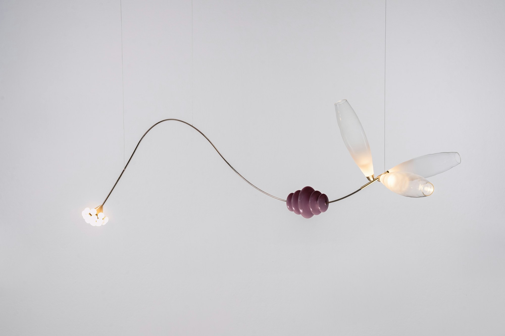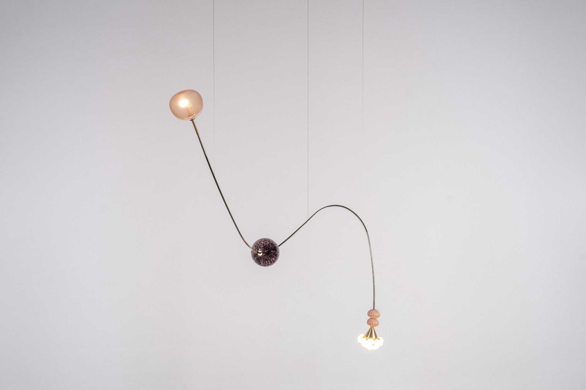 Una wunderkammer che propone un viaggio in 6 anni di ricerca, ispirata alla poesia Il Cosario, che racconta come gli oggetti raccolti negli anni siano attivatori emotivi senza tempo. Componenti vitrei, inserti metallici, ciuffi di cavi e bottoni in ottone creano composizioni che si trasformano in forme nuove e uniche attraverso un sistema di pesi ed equilibri, dove i nostri elementi iconici scorrono come leggeri scarabocchi in un paesaggio di ricordi.