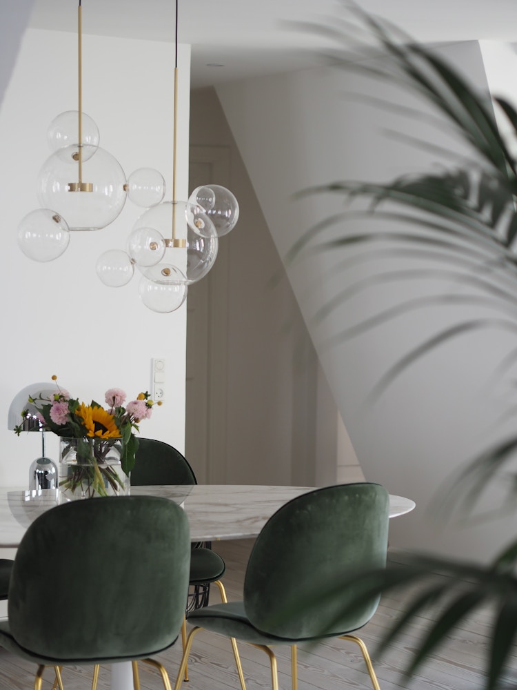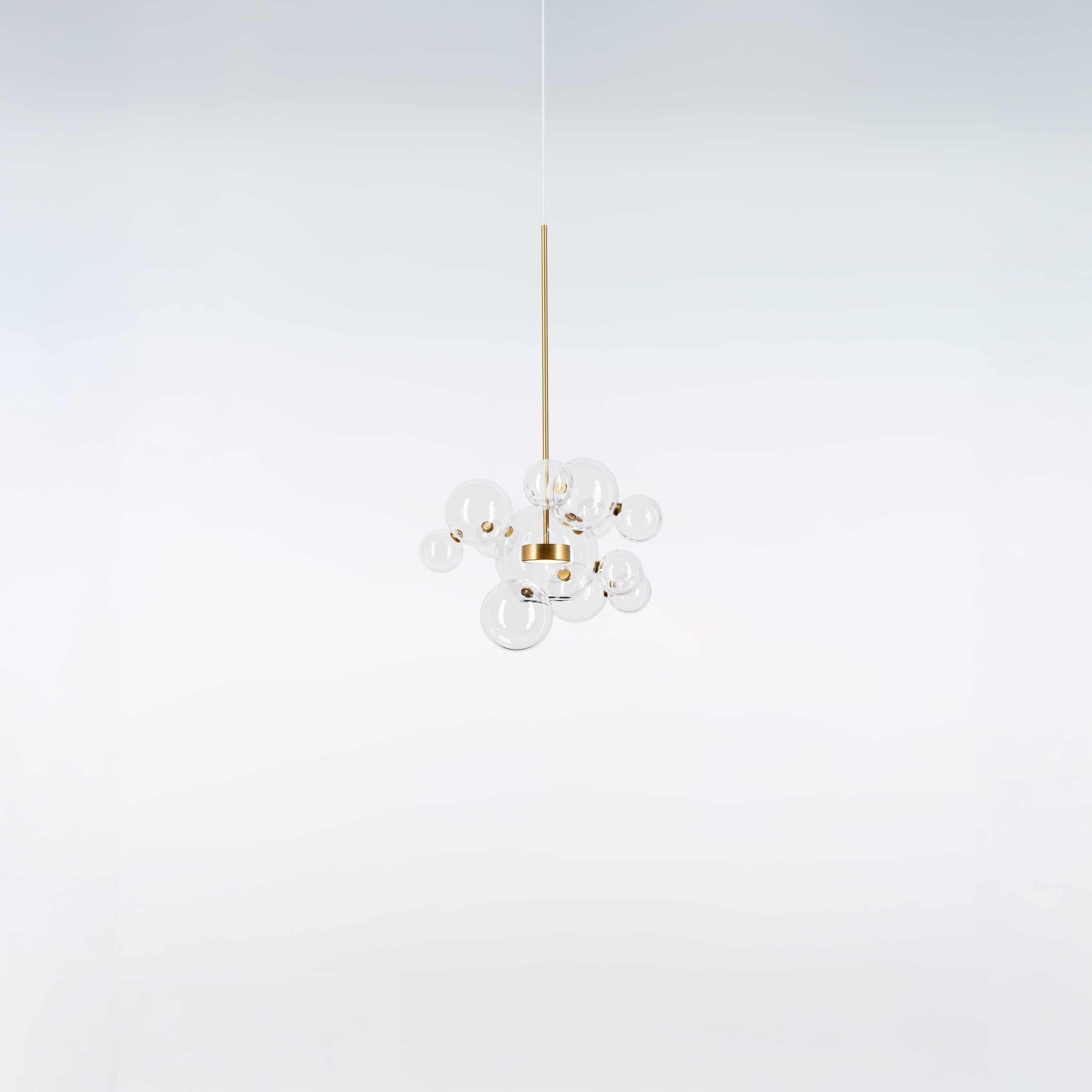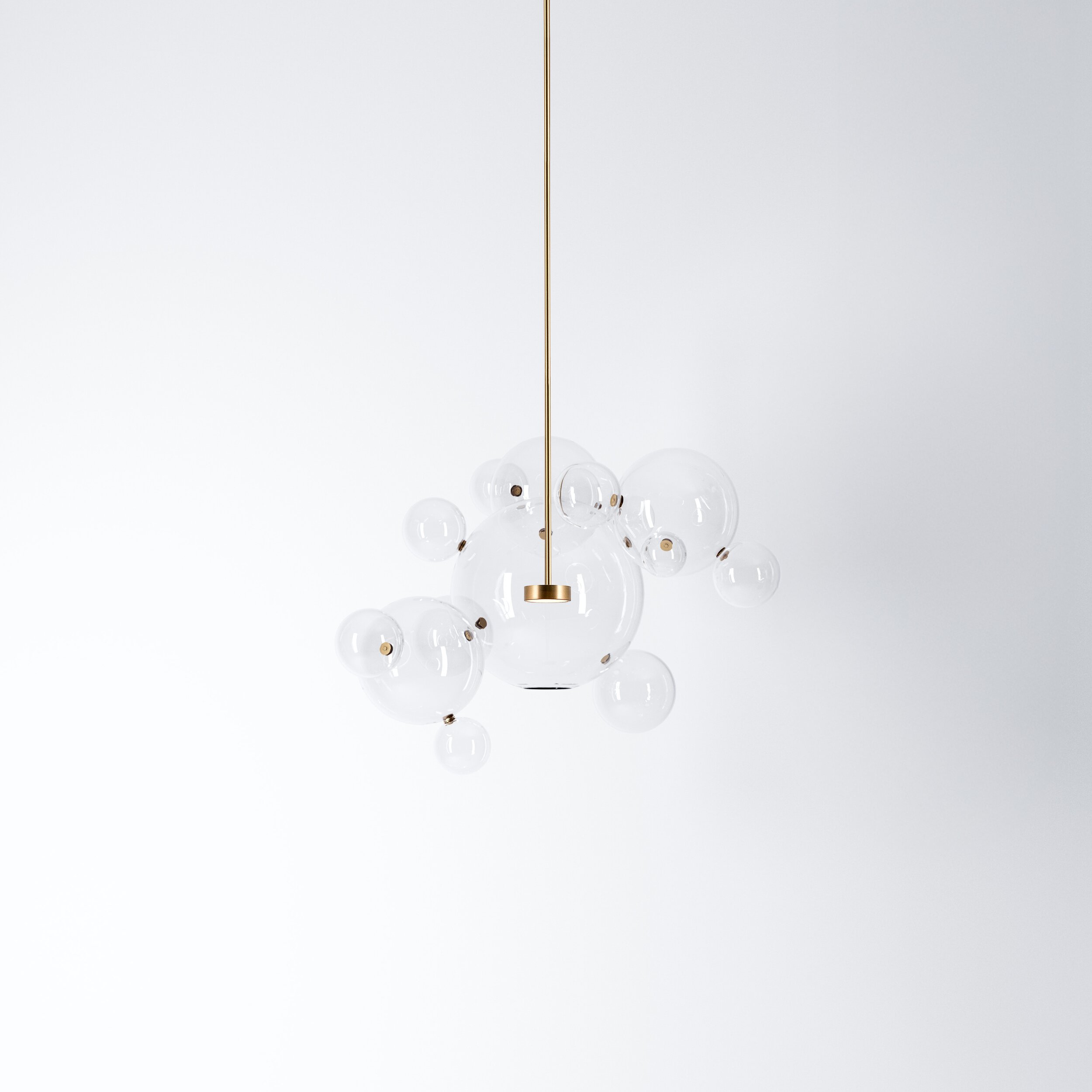 Hand-blown borosilicate glass and hand-finished or electroplated brass