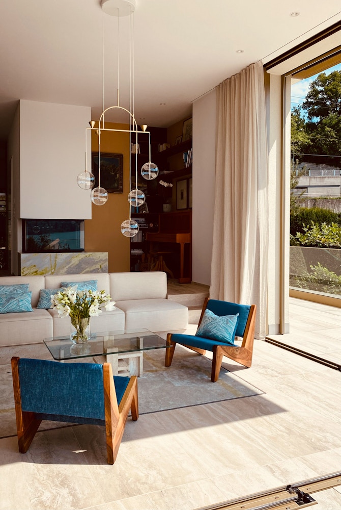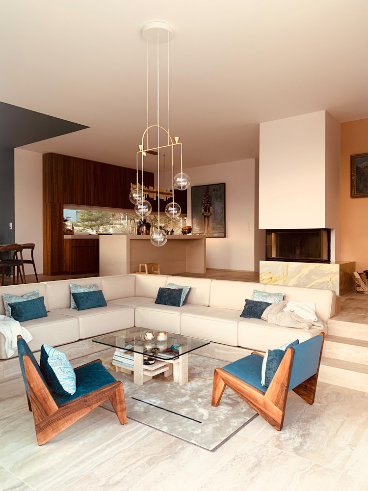 Hand-blown transparent or mist (white-nuanced) borosilicate glass and hand-finished or electroplated brass