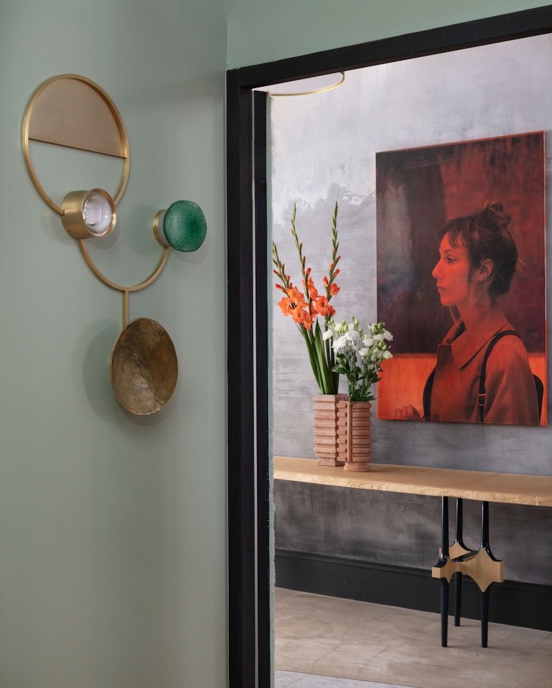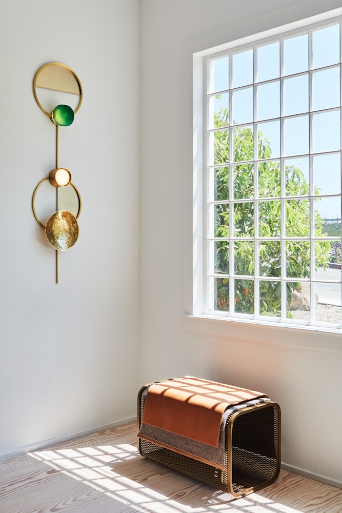 Hand-blown Murano glass, lost wax brass casting and turned brass. All hand finished