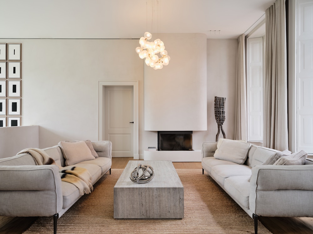 Transparent, translucent or blushed hand-blown borosilicate glass, hand-finished and electroplated brass