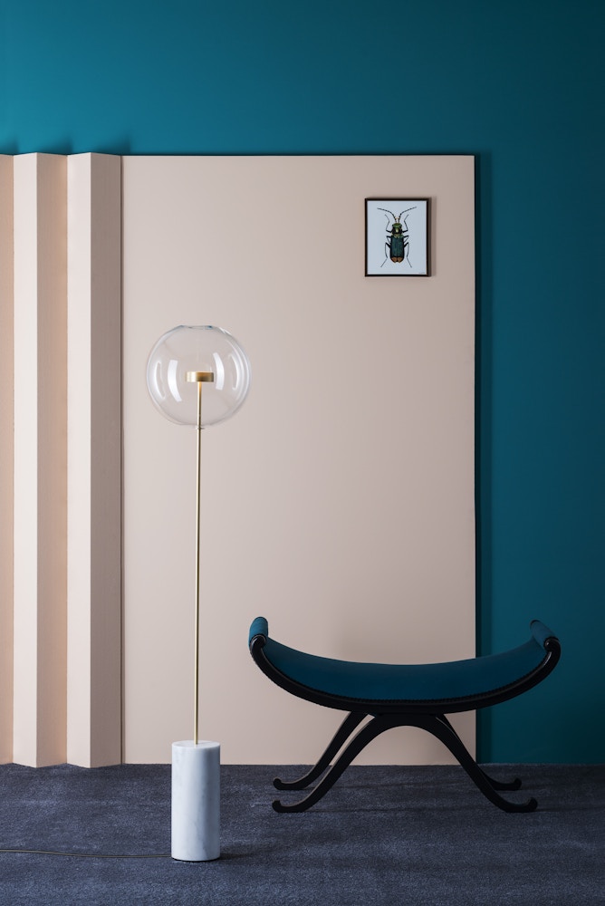 Hand-blown borosilicate glass, hand-finished or electroplated brass and marble
